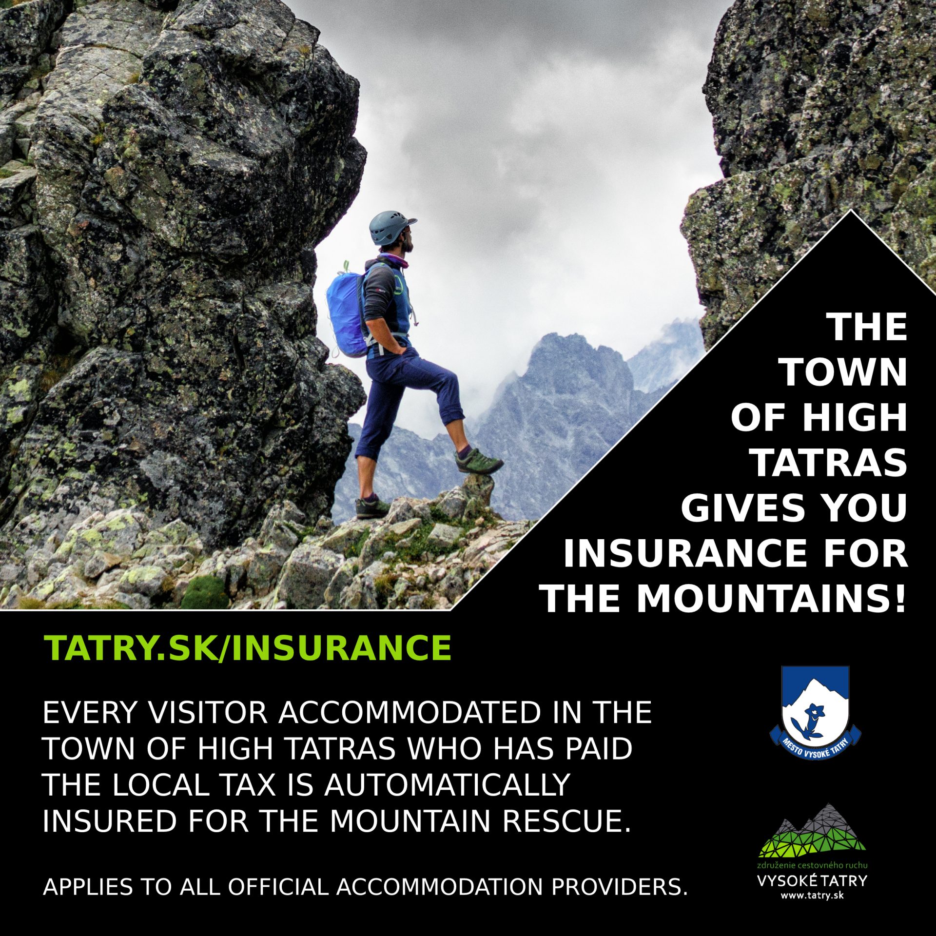 Since June 1, 2020, every visitor staying within the territory of the town of Vysoké Tatry and registered in the accommodation records, from whom the accommodation tax has been collected, is collectively insured for Mountain Rescue Service interventions.
